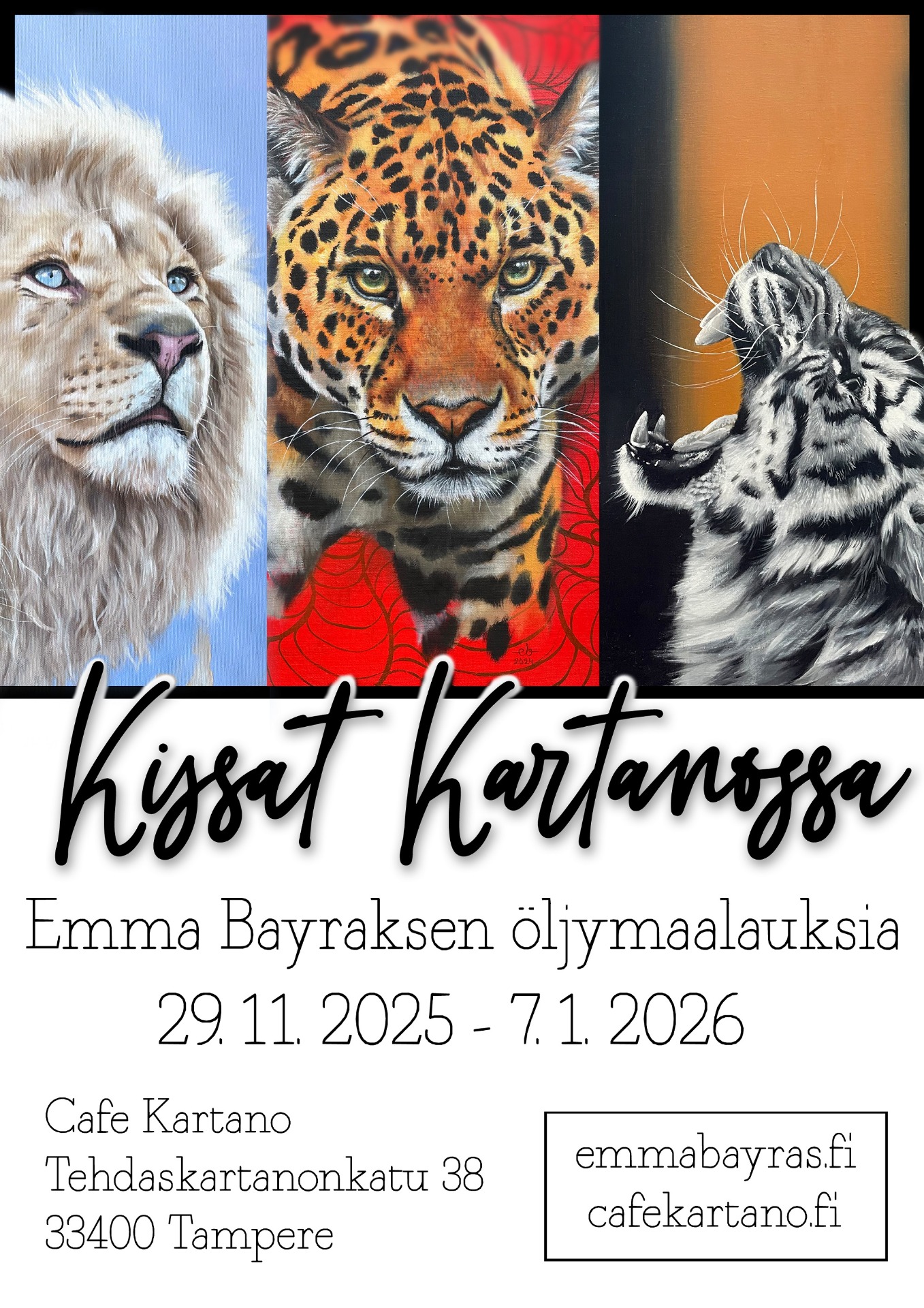 ja maalaan öljyväreillä värikylläisiä eläinaiheisia teoksia.